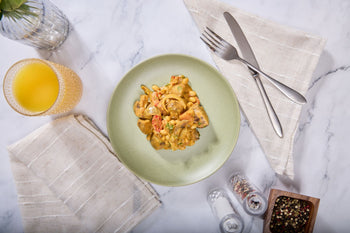 Red Curry Paste, Tumeric, Garlic - Fresh, Cilantro - Fresh, Brown Mushrooms, Lemon Juice, Onion - Red, Milk - Coconut, Onion - Yellow, Oil - Sunflower, Tomato - Diced - Canned, Spice - Cumin - Ground, Spice - Curry Powder, Erythritol, Red Chili Pepper, Water, Paprika, Beans - White , Salt - Coarse - Kosher, Spice - Pepper - Black - Ground, Ginger (Paste)