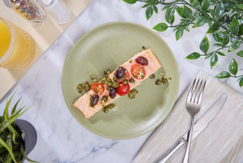 Lemon Juice, Garlic - Fresh, Oil - Sunflower, Salt - Coarse - Kosher, Parsley - Bunch - Fresh, Spice - Pepper - Black - Ground, Oil - Olive, Cherry Tomatoes, Olive - Kalamata Pitted, Capers, Salmon Fillet